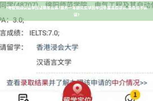 国外一年研究生学历学位中国是承认的,是给予认证,只要自己完成了国外的研究生一年的学业,正常的进行了毕业,那么中国就是承认,但是需要回国之后进行认证,通过认证就是有研究生学历的