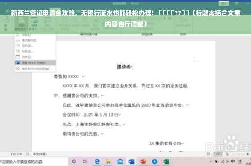 摘要:本攻略详细介绍了新西兰签证申请流程,即使无银行流水也能成功办理。本攻略提供全面的签证申请指导,包括准备材料、填写申请表格、面试技巧等,并特别解答了无银行流水如何办理新西兰签证的问题。无论是否有银行流水,都能通过本攻略轻松掌握签证申请的诀窍。