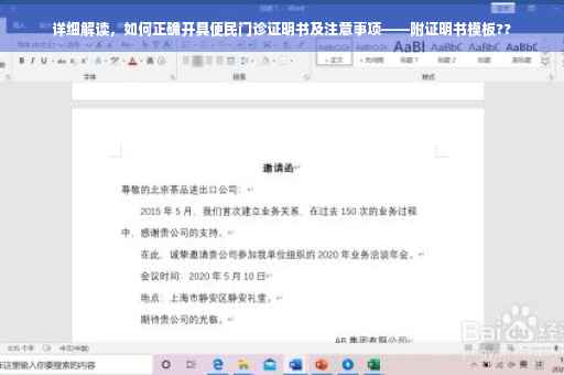摘要:本文介绍了如何正确开具便民门诊证明书,包括详细步骤和注意事项。文章指出,开具证明书需要遵循规范的流程和格式,确保信息的真实性和准确性。医生需了解证明书的用途和法律责任,注意保护患者隐私。本文提供了便民门诊证明书模板,以便参考和使用。