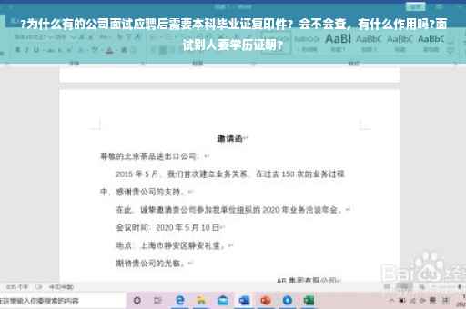 申请高新技术企业的公司,需要中高级人才达到一定的比例,员工毕业证即是证明资料之一。当你知道自己已经获得了这个职位,公司需要将你的本科毕业证复印件作为档案留底。