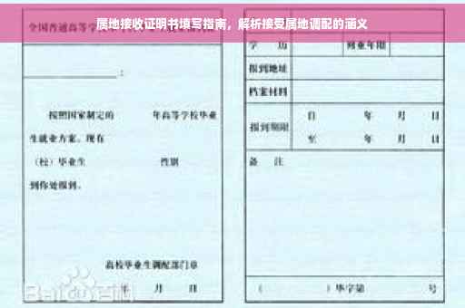 摘要:本指南旨在帮助理解并填写属地接收证明书,特别是关于“接受属地调配”的含义。该内容解释了什么是属地调配,为何需要填写接收证明书,以及如何正确填写相关信息。通过本指南,帮助更好地理解并遵守相关程序,顺利完成属地接收证明书的填写。