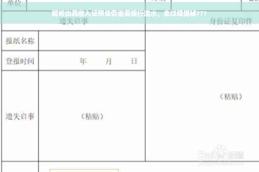 在日常生活和工作中,我们有时会遇到需要提供收入证明的情况,比如办理贷款、申请信用卡、租房等,这时,一些人会疑惑:出具收入证明需要银行流水吗?本文将详细解析这一问题,并带你了解整个过程。