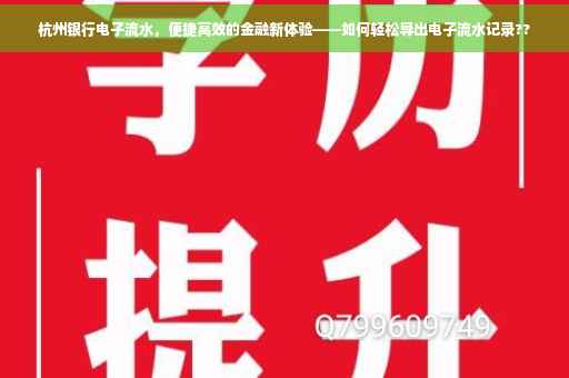 随着科技的飞速发展,银行业正经历着前所未有的变革,杭州银行作为领先的金融机构之一,始终紧跟时代步伐,致力于为广大客户提供更加便捷、高效的金融服务,杭州银行电子流水服务正是这一努力的典型代表,本文将详细介绍杭州银行电子流水的功能、优势及操作指南,帮助广大客户更好地了解和利用这一服务。