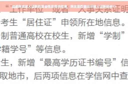随着城市化进程的加速,越来越多的人选择在城市购房安家,作为西部地区的重要城市,成都的房地产市场日益繁荣,吸引了众多购房者,在购房过程中,收入证明成为了一个重要的环节,本文将详细介绍成都买房为什么要提供收入证明,并解答读者在提供收入证明过程中的常见问题。