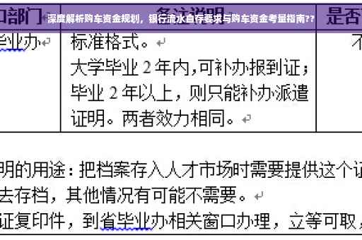 随着人们生活水平的提高,汽车已成为越来越多人的日常出行工具,在购车过程中,资金问题一直是不可忽视的一环,特别是在贷款购车的情况下,银行流水自存的重要性日益凸显,本文将深度解析买车时银行流水自存的意义、作用及实际操作过程中的注意事项。