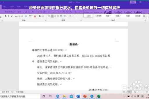 摘要:税务局要求提供银行流水,这是为了核实个人或企业的财务状况和收入情况。银行流水是记录个人或企业在银行进行的所有交易记录的清单,包括存款、取款、转账等。提供银行流水有助于税务局更准确地评估税款和防止逃税行为。在提供银行流水时,需要注意保护个人隐私和账户安全,避免泄露敏感信息。了解流程和要求,确保提供正确的资料,以避免不必要的麻烦。
