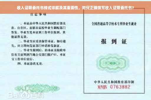 摘要:本文将介绍收入证明委托书的格式及其重要性。文章指出,收入证明委托书是一种重要的法律文件,能够帮助个人或组织证明某人的收入状况。本文将详细介绍如何撰写收入证明委托书,包括格式要求、必要内容等,以帮助读者了解如何正确书写并发挥委托书的重要性。阅读本文,您将了解如何正确书写收入证明委托书,以及其在实际生活中的重要作用。