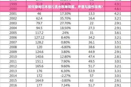 随着中日经贸往来的日益频繁,越来越多的人需要在日本开设银行账户,而在某些情况下,我们需要查询日本银行的流水记录,例如办理贷款、税务申报等,如何查日本银行流水呢?本文将为您详细介绍。