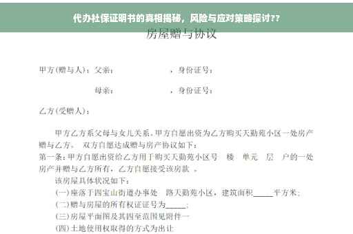 摘要:本文探讨了代办社保证明书的真相、风险及应对之策。文章指出,虽然存在代办社保证明书的服务,但其中隐藏着不少风险。读者需谨慎对待代办机构,了解真实情况,防范潜在风险。本文也提供了一些应对之策,帮助读者在需要办理社保证明书时做出明智的选择。