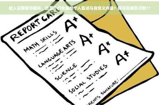 收入证明是一份重要的文件,旨在客观反映个人的收入水平和工作情况,在添加个人陈述或自定义内容时,务必保持真实、客观和简洁,遵循公司政策和相关规定,关注其他细节,如格式规范、盖章和签发日期等,希望本文能够帮助您更好地了解收入证明的相关细节,为您的生活和事业提供帮助。