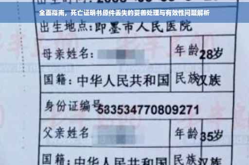 摘要:针对死亡证明书原件丢失的问题,需要妥善处理以避免不必要的困扰。应立即联系相关部门进行挂失和补办手续。丢失的死亡证明书原件在法律上可能仍具有效力,但为确保权益,建议尽快补办新的证件。这份全面的指南将帮助你解决丢失死亡证明书原件的难题。
