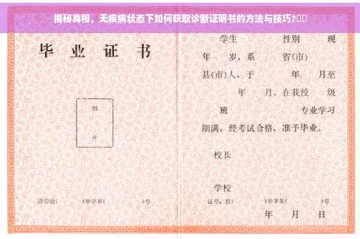 诊断证明书是具有重要的法律效力的医疗文件,我们应该真实、合法地使用并获取它,在没有疾病的情况下获取诊断证明书不仅违背道德伦理还可能涉及违法行为,我们应该了解并遵守相关法规,树立正确的价值观,珍惜自己的信誉,在真正需要时选择正规渠道寻求专业医生的帮助并合法获取使用诊断证明书。
