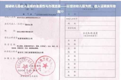 随着教育行业的蓬勃发展,幼儿园作为儿童早期教育的重要阶段,其运营状况和经济效益日益受到关注,幼儿园收入证明作为反映幼儿园经济实力和运营状况的重要文件,对于幼儿园的可持续发展具有至关重要的作用,本文将详细介绍幼儿园收入证明的作用、办理流程以及注意事项,帮助读者更好地了解这一重要文件。