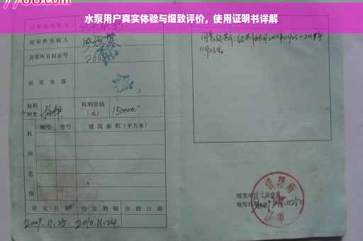 本文介绍了如何撰写水泵用户使用证明书,包括真实体验与细致评价。文章指出,用户在使用水泵后,可以根据其性能、质量、使用效果等方面进行评价,并详细描述了水泵在实际应用中的表现。该证明书旨在帮助其他用户了解产品性能和质量,以便做出明智的购买决策。文章还提供了撰写证明书时需要注意的要点和技巧。本文是一篇关于水泵用户使用证明书的实用指南。摘要字数在100-200字左右。