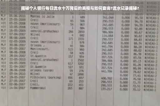 摘要:个人银行每日流水达十万,背后隐藏着不为人知的故事和真相。本文将揭示如何查询个人银行每日流水账单,包括通过网上银行、手机银行等渠道进行查询。还将探讨个人银行流水账单的重要性及其对个人财务管理的影响,帮助读者更好地了解自己的财务状况。
