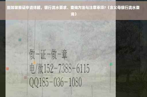 摘要:本文详细介绍了新加坡签证申请流程,特别关注父母银行流水的要求与注意事项。申请新加坡签证时,父母银行流水是重要材料之一。本文将指导如何查询父母银行流水,以确保申请过程顺利。遵循本文的指导,您将更好地了解新加坡签证申请的相关细节和注意事项。