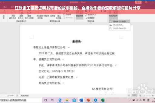 江联重工离职证明书背后隐藏着许多故事和真相,作为一名自媒体人,我将持续关注此事,从多个角度深度剖析这一事件,探寻背后的原因和解决方案,我也将关注员工的实际需求,为企业的发展提供有益的建议,希望江联重工能够吸取教训,积极改进,为员工和企业创造更美好的未来。
