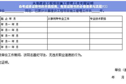 关于自考成绩的有效证明书开具,通常需要考生提供个人身份证明、准考证号及成绩单等相关材料。证明书应包含考生基本信息、所考科目、成绩及合格情况等。具体开具流程可能因地区或机构而异,需遵循相关自考办或学校的规定。对于自考成绩证明书,一般命名为“自考成绩合格证明书”或类似表述,用以证明考生的自考成绩及是否达到毕业要求。