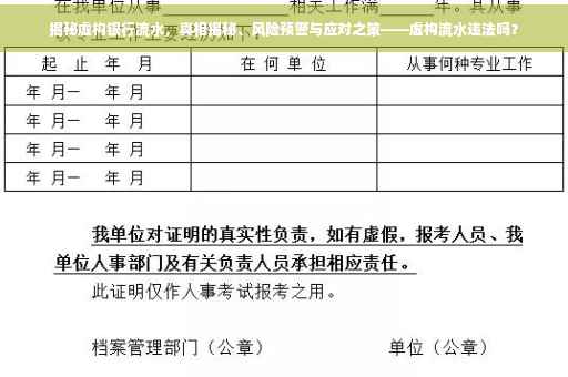 摘要:本文将揭示虚构银行流水的真相、风险及应对之策。虚构银行流水涉嫌违法,可能导致信用受损、法律风险增加。本文将探讨虚构流水的背后原因,风险警示,并提供防范建议。务必警惕虚构流水行为,遵守法律法规,维护金融秩序和个人信用。