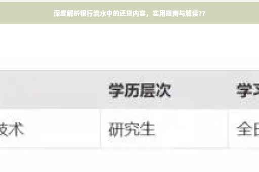 摘要:本文介绍了银行流水中的还贷内容,深度解析了还贷的概念和流程,为读者提供了实用的指南。文章解释了银行流水账单上的还贷记录反映了个人或企业的还款情况,包括贷款的种类、还款金额和还款时间等信息。本文还介绍了如何正确理解和使用银行流水中的还贷信息,帮助读者更好地管理自己的财务状况。