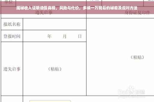 随着社会的快速发展,收入证明在各个领域扮演着越来越重要的角色,无论是求职、贷款、申请福利还是其他方面,收入证明都是评估个人经济状况的关键依据,一些人为了获得更好的机会或更高的待遇,不惜在收入证明上动手脚,多填收入数额,本文将深入探讨这种做法的风险和代价,揭示多填一万背后的真相。