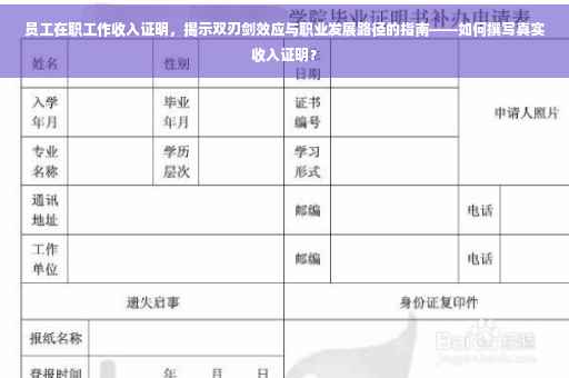 在当今社会,随着经济的不断发展和就业市场的繁荣,越来越多的人加入到各行各业的工作中,而在职场中,员工在职工作收入证明成为了许多重要事务的必备材料,如贷款申请、信用卡办理、租房等,本文将围绕员工在职工作收入证明展开讨论,旨在为读者揭示真实收入状况与职业发展的关系,同时探讨收入证明在职场中的双刃剑效应。