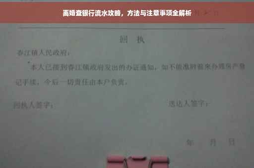 摘要:本文将全面解析离婚时如何查银行流水的方法和注意事项。通过简单易懂的方式,介绍如何获取银行流水账单,包括前往银行柜台查询、网上银行查询等方式。提醒读者在查询过程中需注意保护个人隐私,确保合法合规。本文旨在帮助离婚当事人更好地处理财产分割问题,确保自身权益。