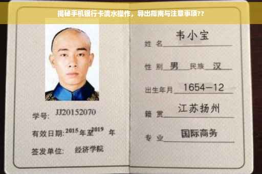 摘要:本文将为你揭示手机银行卡流水的操作指南与注意事项。通过简单步骤,你可以轻松导出银行卡流水。本文将指导你如何操作,并提醒你注意保护个人信息和账户安全,确保在查看和分享银行卡流水时遵循正确的步骤和注意事项。