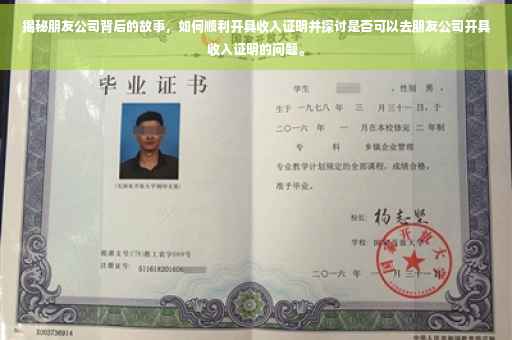 摘要:本文将探讨如何顺利开具收入证明,并揭秘朋友公司背后的故事。通过深入了解朋友公司的背景、经营状况及业务范围,可以更好地理解收入证明的重要性及其开具流程。本文还将探讨是否可以去朋友公司开具收入证明,并给出相关建议和注意事项。让读者了解在开具收入证明时需要注意的问题,确保顺利办理相关手续。