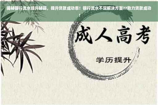 在贷款申请过程中,银行流水作为评估个人信用状况和还款能力的重要依据之一,往往成为决定贷款成功与否的关键因素,很多人在申请贷款时发现自己的银行流水不够,导致贷款申请被拒绝,面对这一问题,该如何有效提升银行流水呢?本文将为你揭示银行流水提升秘籍,帮助你轻松提升贷款成功率!