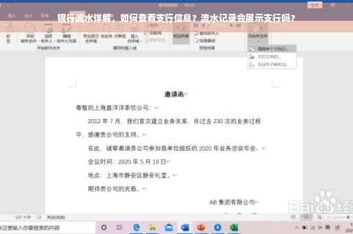 银行流水作为个人金融活动的真实记录,具有重要意义,通过本文的介绍,读者已经了解了如何通过银行流水查看支行信息以及其在不同场景下的应用,在日常生活中,我们应当妥善保管好自己的银行流水记录,并学会如何正确查看和使用支行信息,也要提高警惕,保护个人隐私和账户安全。
