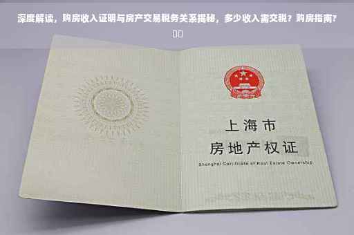 在当下火热的房地产市场,购房成为众人关注的焦点话题,许多人在购房过程中对于收入证明与税务之间的关系存在诸多疑问,为此,本文将详细解读购房收入证明与交税之间的关系,帮助读者更好地了解房产交易中的税务问题。