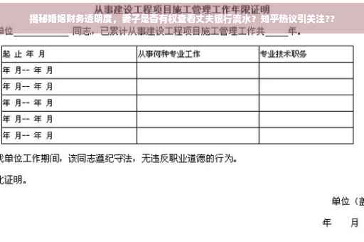 随着社会的进步和婚姻观念的转变,夫妻间的财务透明度问题逐渐受到关注,妻子是否有权查看丈夫的银行流水成为一个热门话题,本文将从多个角度探讨这一问题,并深入分析背后的原因和可能的解决方案。
