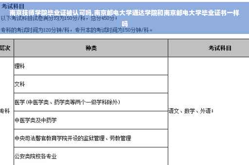 毕业证书是不一样的,通达学院的毕业证书上面增加通达学院四个字,你别看这简简单单四个字,却让毕业证书的含金量低了很多,因为通达学院是二级学院,他们招的学生比南京邮电大学的学生质量要差一些、所以大多数用人单位更加认可南京邮电大学的毕业证书