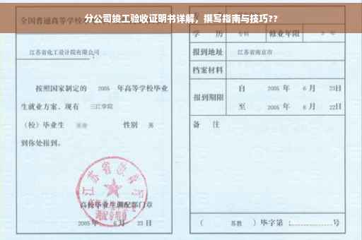 随着企业不断壮大,开设分公司成为拓展市场、增强竞争力的重要策略,分公司项目的竣工验收标志着企业投资的一个重要阶段结束,同时也象征着新起点的开始,本文将为您详细介绍分公司竣工验收证明书的内容及相关注意事项,助您更好地了解和掌握这一重要环节。