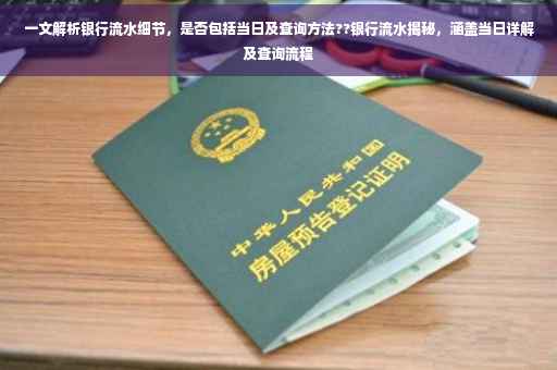 摘要:银行流水细节解析,涵盖是否包括当日交易记录。查询银行流水,可登录网银或前往银行柜台操作。文章详细解释如何获取准确的流水信息,包括注意事项和常见问题解答,帮助读者了解银行流水细节,保障个人金融安全。