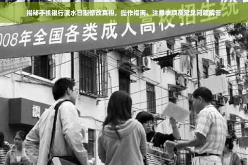 摘要:本文揭秘了手机银行流水日期修改的真实情况,包括操作方法和注意事项。读者将了解到如何操作手机银行流水日期修改的步骤,以及在进行修改时需要注意哪些问题。本文还将解答关于手机银行流水日期修改常见的问题,如修改失败的原因等。