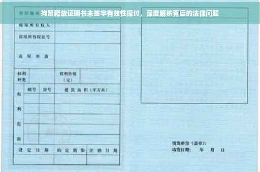 关于拘留释放证明书未签字的有效性探讨。本文将探讨拘留释放证明书的签字问题及其对证明效力的影响。是否未签字即意味着该证明书无效,本文将对此进行深入剖析。还将探讨由此引发的相关问题及其背后的原因。