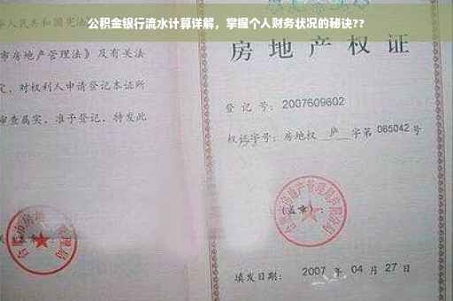 公积金银行流水计算是个人财务管理的重要部分,为确保数据的准确性,计算时需注意细节,建议定期计算银行流水,以更好地掌握个人财务状况,根据计算结果,制定财务规划,实现财务自由,掌握公积金银行流水计算方法,轻松掌握个人财务状况,为未来生活做好充分准备。