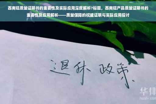 摘要:本文将探讨西南铝质量证明书的重要性及实际应用。通过深度解析,让读者了解质量证明书在铝产品领域的作用,包括证明产品质量、保障用户权益等方面。本文还将介绍西南铝质量证明书的具体内容和实际应用情况,展示其在铝产品行业中的价值和影响力。