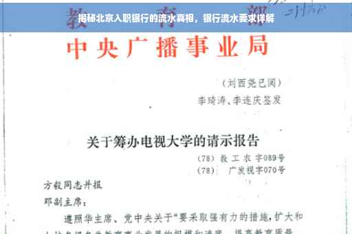 摘要:北京入职银行时,流水要求成为求职者关注的焦点。本文将揭示北京入职银行的流水真相,包括银行对流水的要求和审查重点,帮助求职者了解银行入职流程,为成功入职提供指导。通过了解银行流水的要求,求职者可以更好地准备自己的财务状况,顺利入职银行。