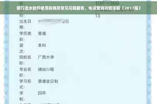 摘要:本指南介绍了银行流水软件的使用方法和常见问题解答,特别是针对电话查询功能。在2017年使用该软件时,用户可以通过电话查询银行流水信息,方便快捷。本指南提供了详细的步骤和注意事项,帮助用户更好地使用该软件,解决在使用过程中可能遇到的问题。
