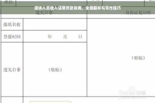 随着社会的进步和经济的发展,个人财务规划日益受到人们的关注,对于退休人员来说,他们有时也可能因为房屋装修、医疗急救等突发情况需要考虑贷款,在申请贷款的过程中,收入证明是一个重要的环节,本文将详细解析关于退休人员贷款收入证明的相关问题,帮助大家更好地了解这一领域。