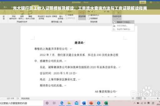 摘要:本文将介绍光大银行员工收入证明模板及其解读,包括收入证明的基本信息、格式要求等。还将详细介绍如何通过手机查询光大银行的工资流水,包括操作步骤和注意事项。这些内容旨在帮助读者了解光大银行员工收入证明及工资查询的相关信息,以便更好地管理个人财务。
