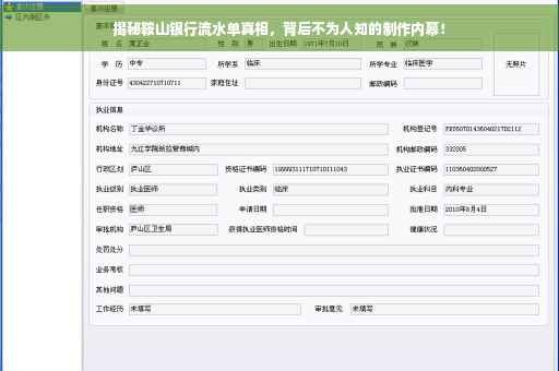 摘要:本文将揭示鞍山银行流水单制作的真相,探究其背后的真相究竟如何。通过深入了解和分析,揭示银行流水单的制作过程及其存在的问题,提醒公众关注银行流水单的真伪,并呼吁相关部门加强监管,确保金融行业的公正透明。