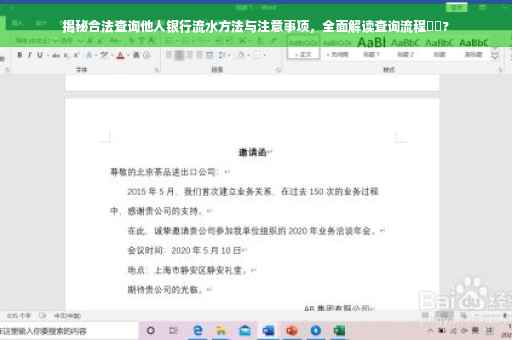 合法查询银行流水是维护自身权益、保障家庭和谐、促进企业健康发展的必要手段,希望本文能够帮助您更好地完成这一操作,确保合法合规。