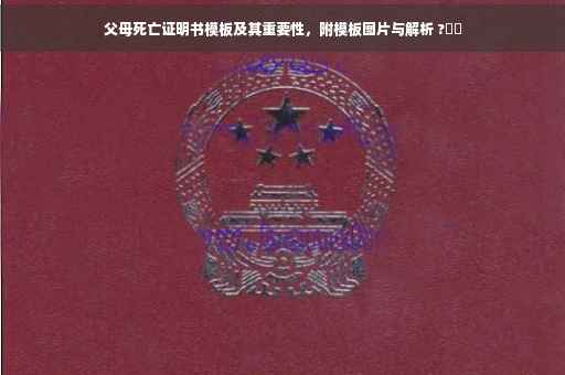摘要:本文将介绍父母死亡证明书模板及其重要性。通过提供模板图片,让读者了解如何正确填写父母死亡证明书。同时强调该证明书的重要性,包括在遗产继承、保险索赔等方面的关键作用。正确填写和使用父母死亡证明书,有助于避免不必要的纠纷和麻烦。