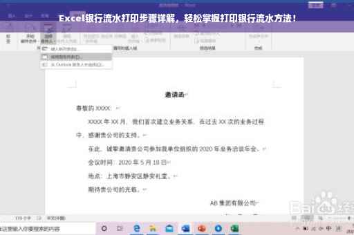 摘要:本文将详细介绍Excel银行流水的打印步骤。登录银行官网或相关APP,进入个人账户。选择需要打印流水的时间段,并点击“流水打印”或“交易明细”选项。按照提示完成打印设置,即可成功打印出银行流水。整个过程简单易行,方便快捷。?⚡️