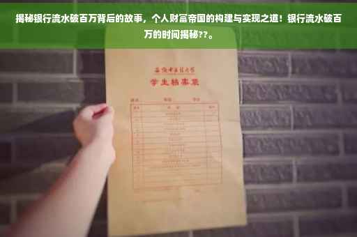 随着金融市场的持续繁荣与个人理财意识的提升,银行流水突破百万已成为众多人的奋斗目标,这不仅仅是一个数字,更是辛勤努力、明智决策与精准眼光的象征,本文将带您走进这个令人向往的世界,揭示背后的故事,并探讨如何规划、实现个人财富帝国的构建。