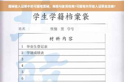 摘要:本文将揭示收入证明中的可擦笔奥秘,探究其真相和使用方法。通过介绍可擦笔的特性和使用场景,帮助读者了解如何在收入证明中巧妙运用可擦笔,避免不必要的麻烦。本文将提供可擦笔的使用指南,帮助读者掌握正确的使用方法,确保收入证明的真实性和有效性。本文还将强调遵守法律和道德的重要性,避免滥用可擦笔带来的风险。
